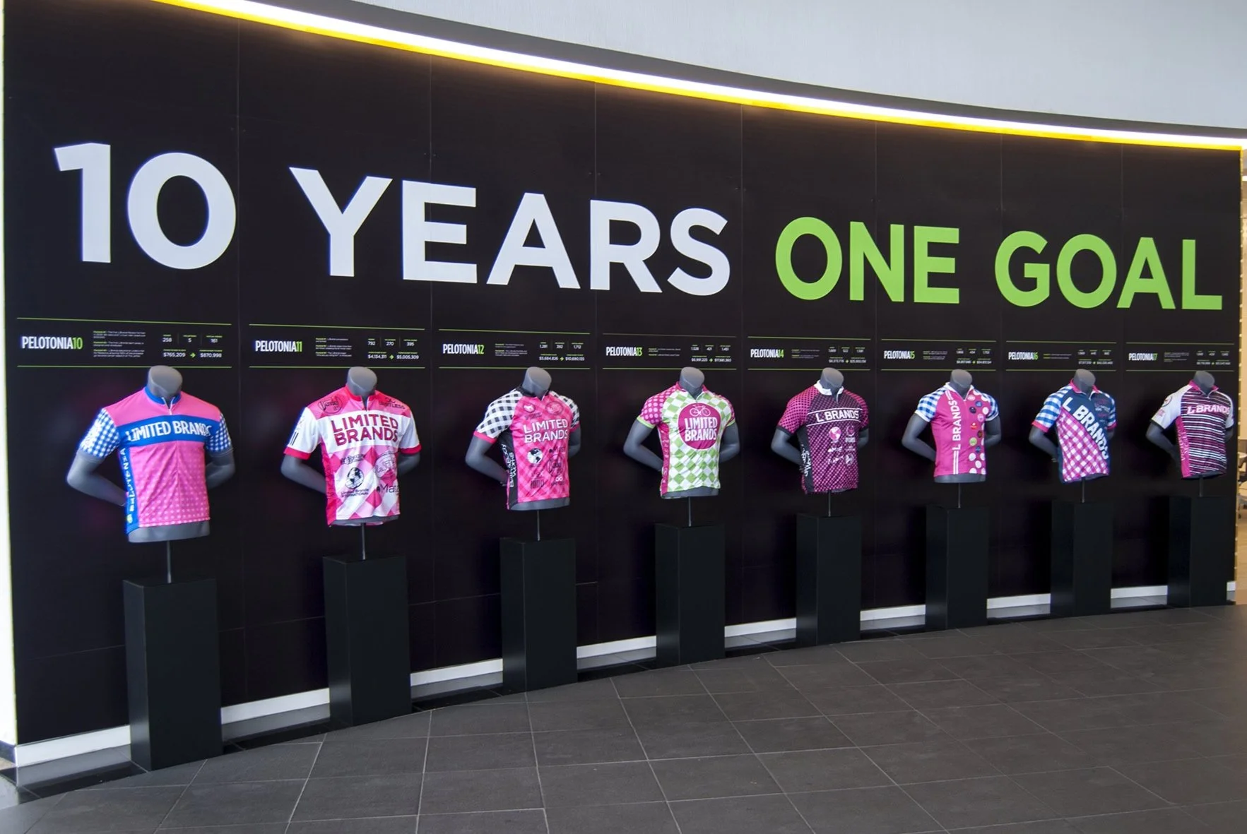 For the momentous 10th anniversary of Pelotonia, I spearheaded the creation of a captivating exhibit that told the inspiring story of our decade-long journey with the organization. This immersive display not only commemorated our unwavering commitment to the cause but also celebrated the incredible impact we've made over the years.